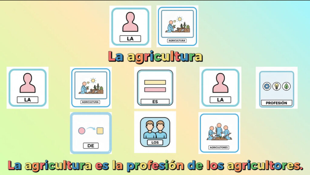 Los Beneficios y el Impacto: Nuestros pictogramas, únicos, transforman ideas abstractas en imágenes concretas. Esto no solo mejora la comprensión del lenguaje y las rutinas diarias, sino que también fomenta la autonomía, reduce la ansiedad y potencia la capacidad de expresión de los niños. Verás cómo conceptos como ‘La agricultura es la profesión de los agricultores’ se vuelven accesibles y fáciles de entender.